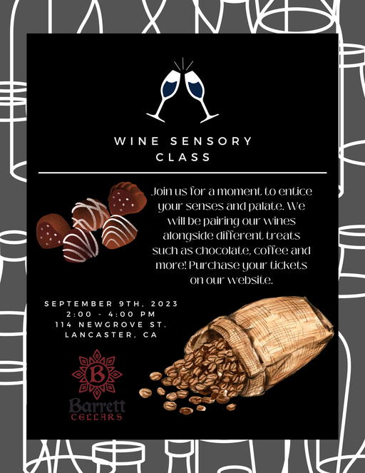 Join us for a moment to entice your senses and palate. We will be pairing our wines alongside different treats such as chocolate, coffee and more! Purchase your tickets on our website below.
