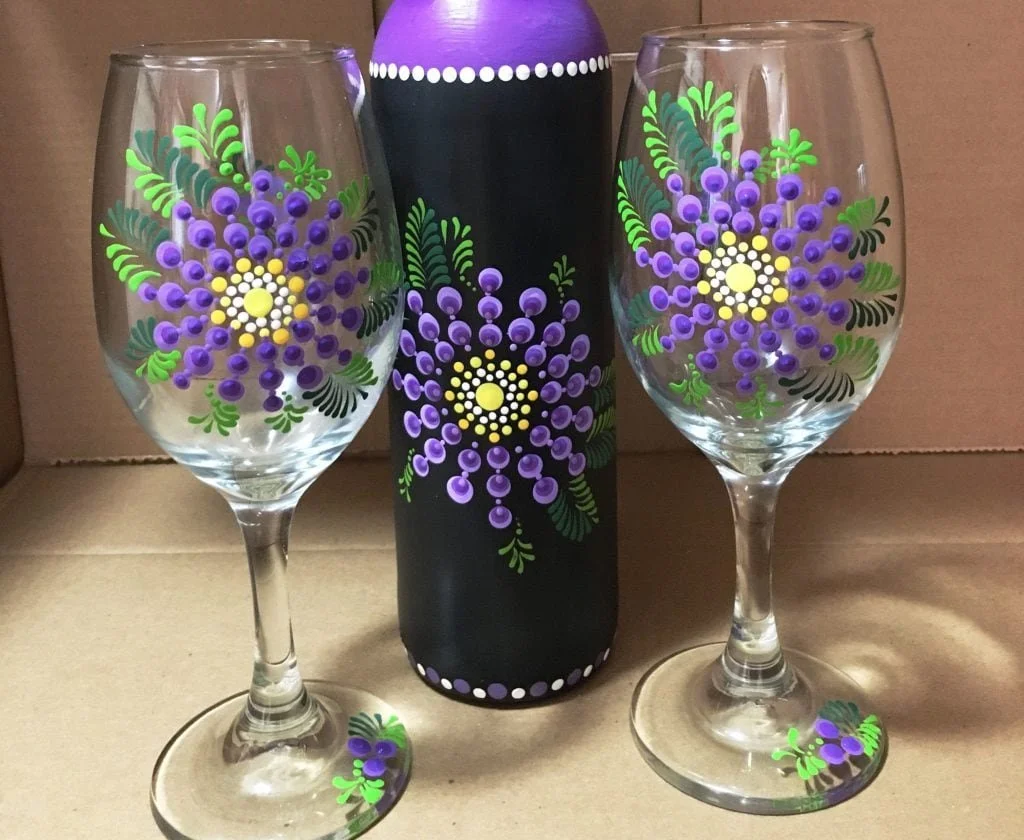 Join us for a fun afternoon of painting!! Mary will walk you through painting "Tropical purple flowers" onto 2 wine glasses, step by step, while sipping a glass of Coruce wine. Please RSVP by calling the tasting room at 661-494-8877 or using the button below on Mary's website. Please feel free to bring your own snacks or order Mary's charcuterie cup or box. Mary's # 661-341-4599